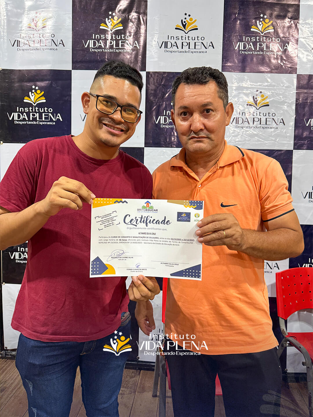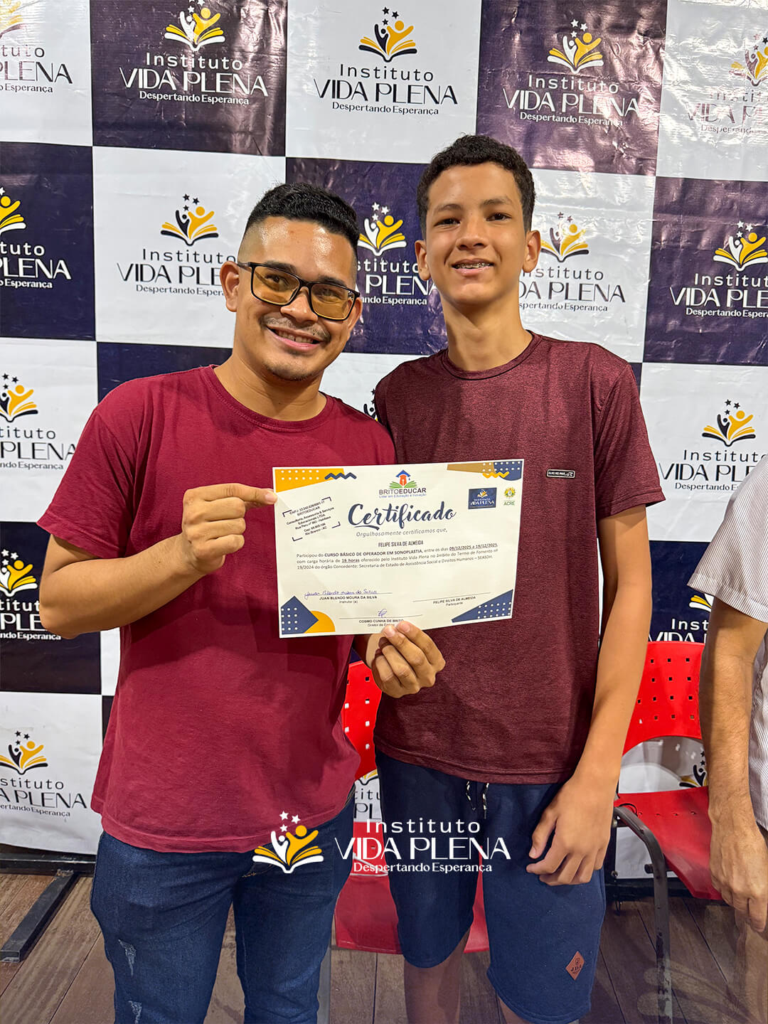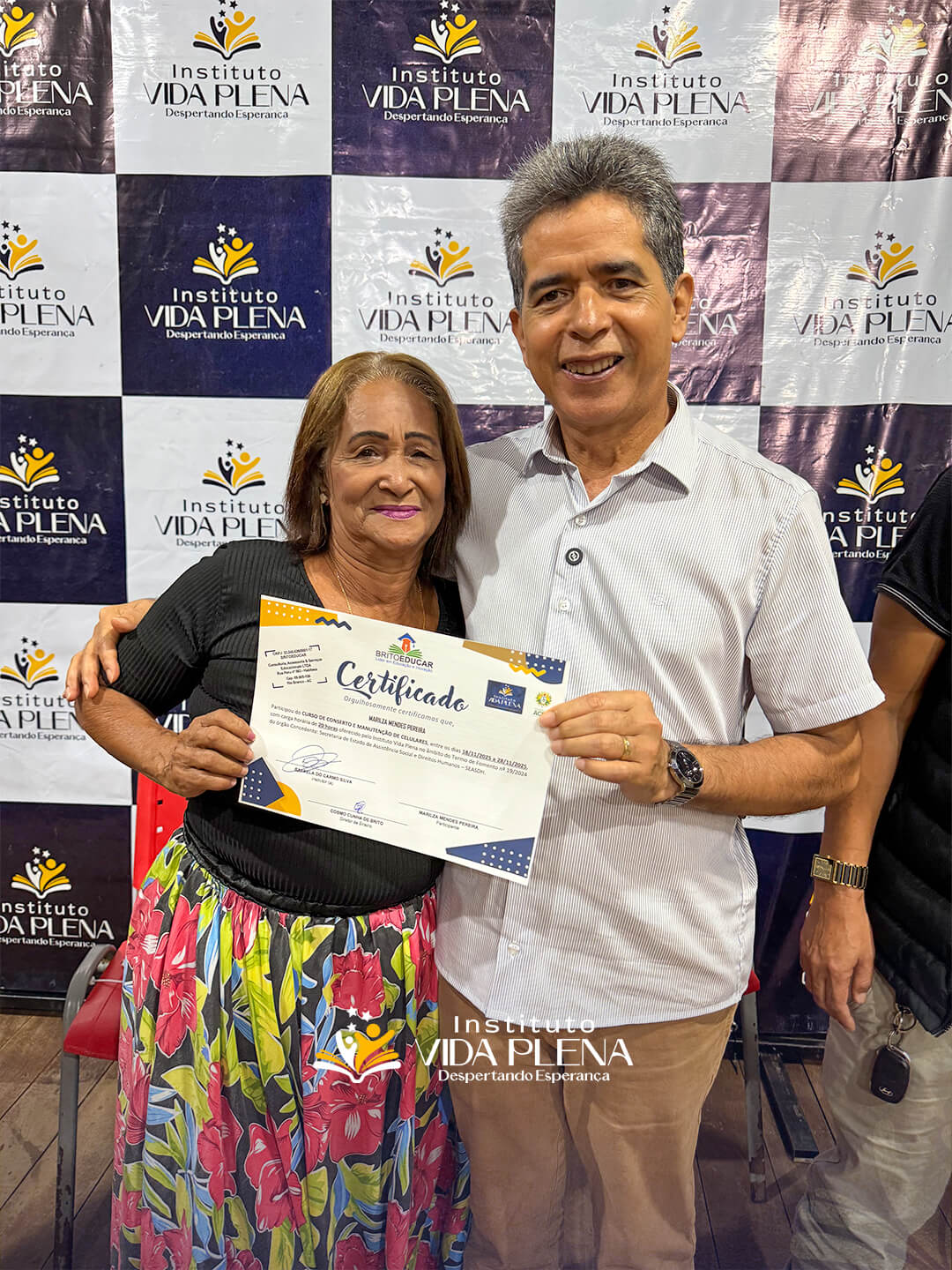 “Esse é um momento de gratidão, porque esses cursos são muito caros e o Instituto Vida Plena está ofertando esses cursos totalmente gratuitos. Por isso, quero agradecer ao Pastor Reginaldo e a toda a equipe do Instituto Vida Plena.”