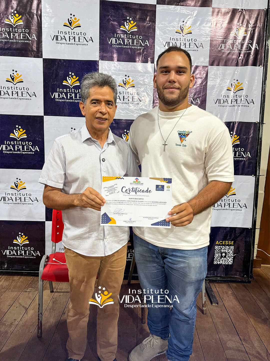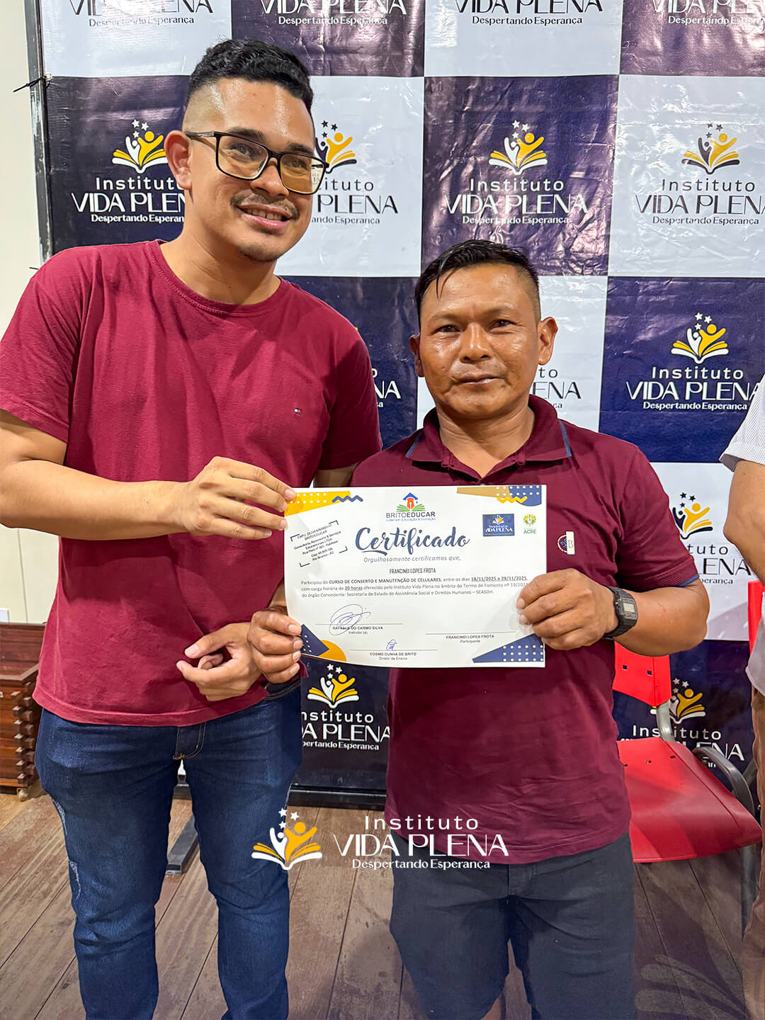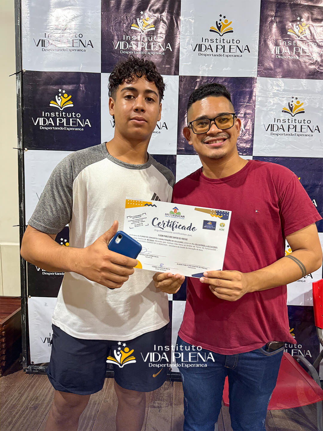 “Esse é um momento de gratidão, porque esses cursos são muito caros e o Instituto Vida Plena está ofertando esses cursos totalmente gratuitos. Por isso, quero agradecer ao Pastor Reginaldo e a toda a equipe do Instituto Vida Plena.”