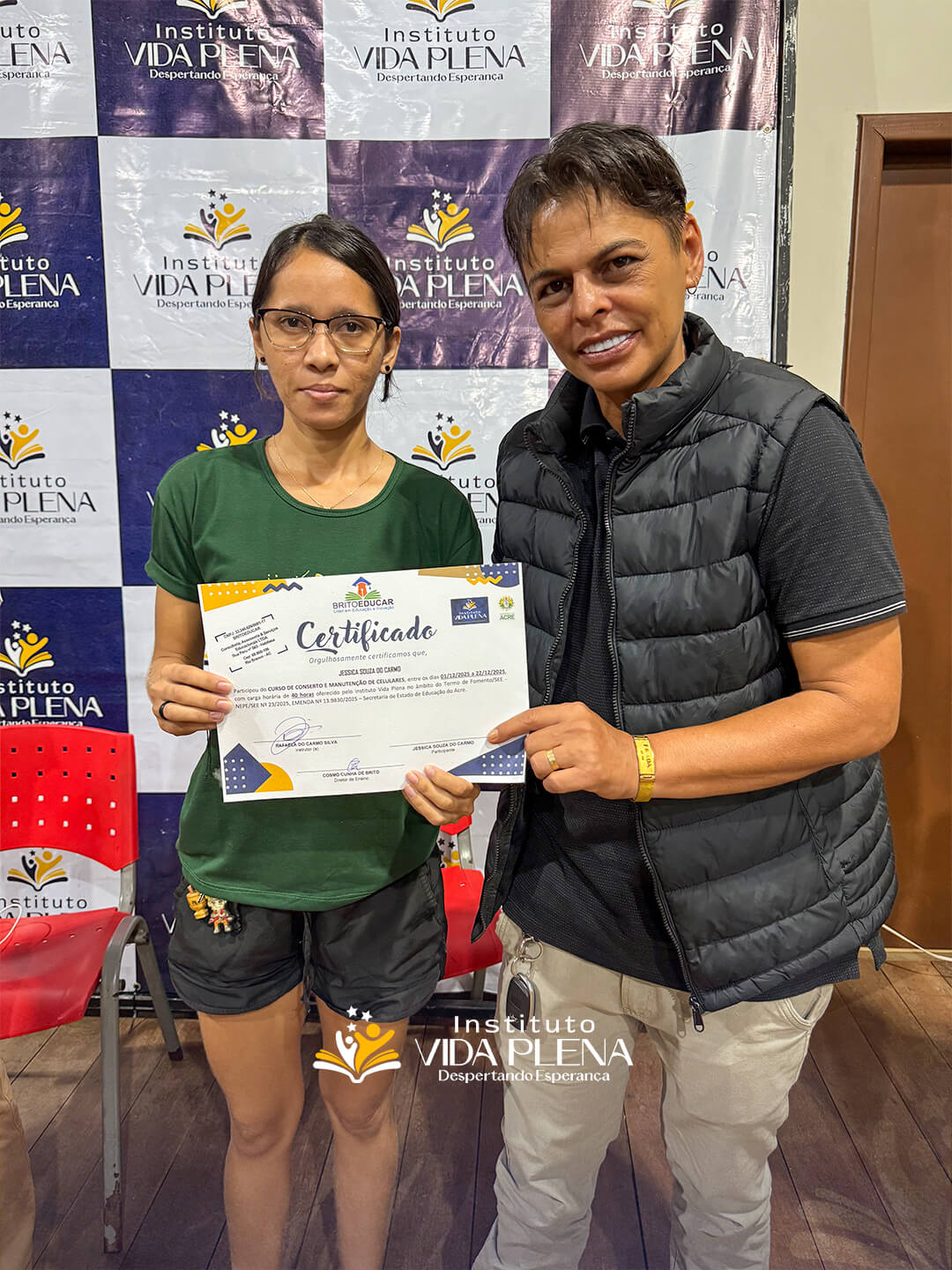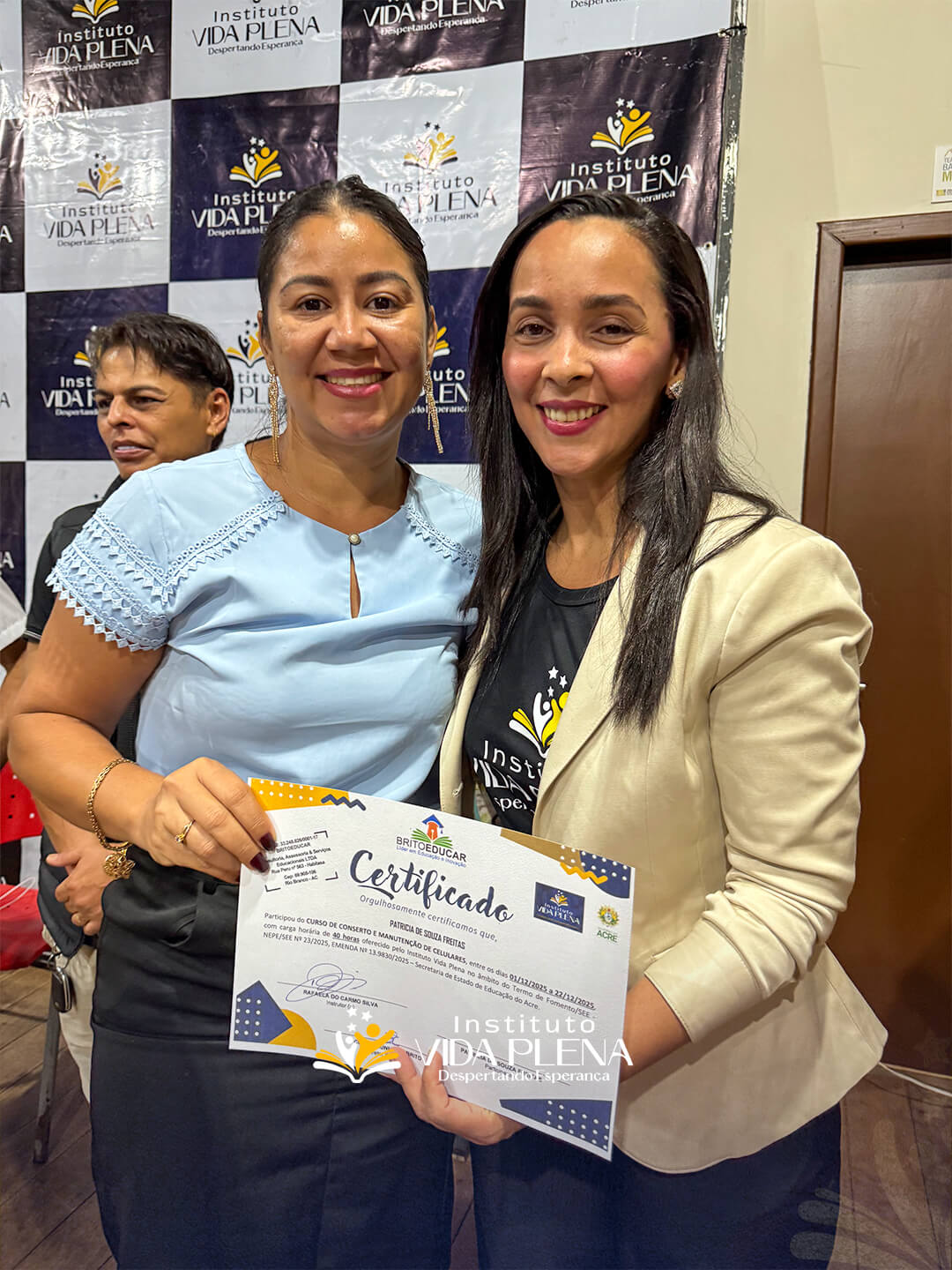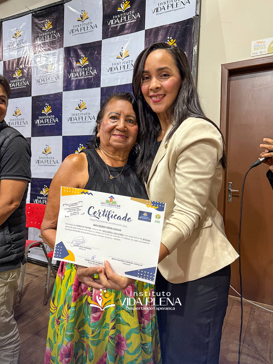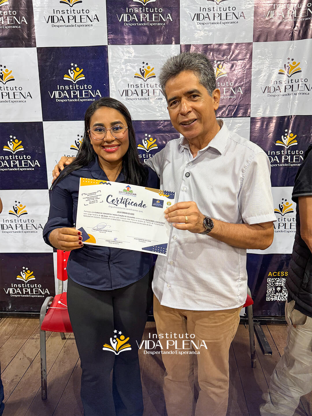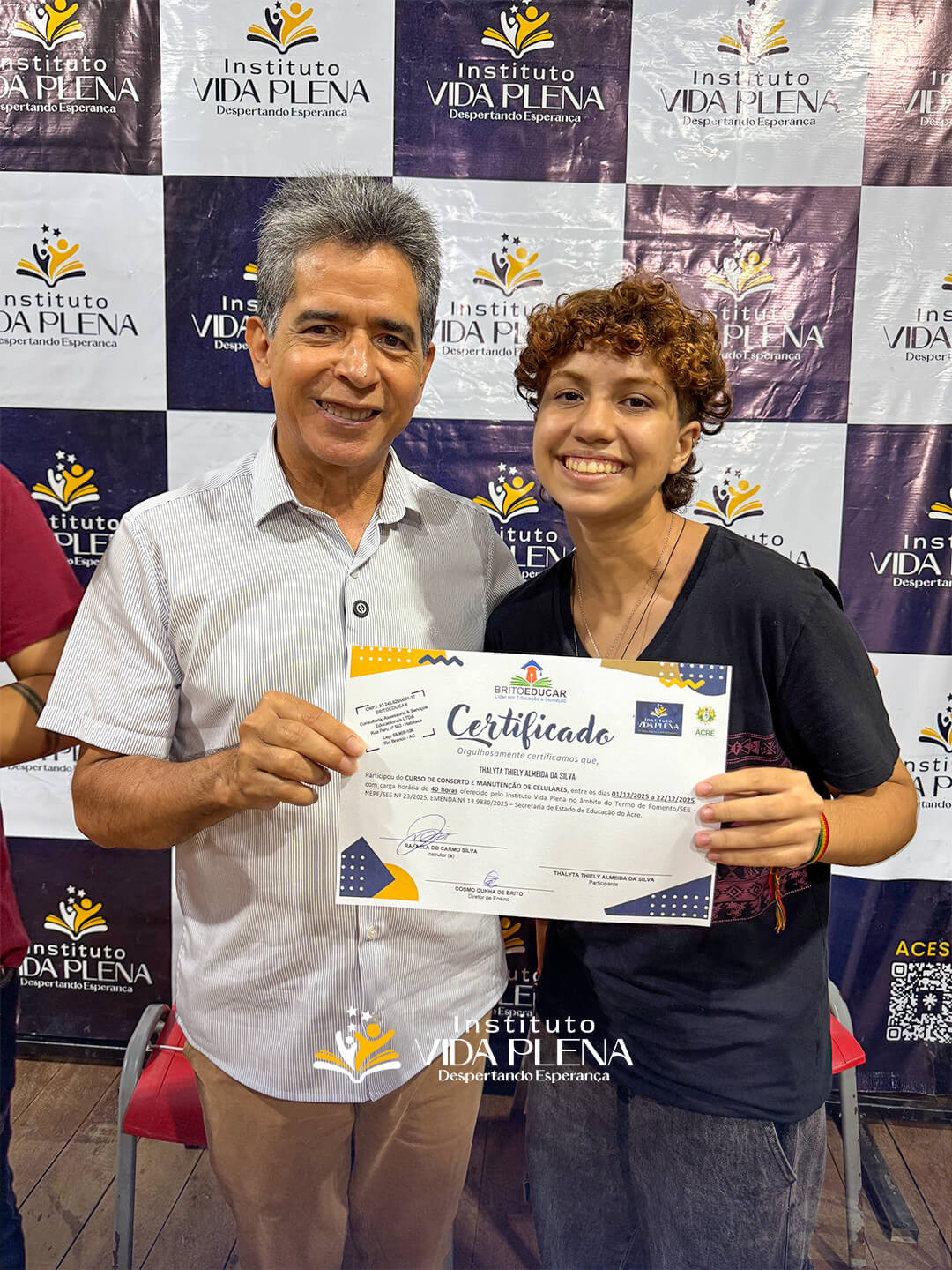 Na noite desta sexta-feira, 09 de janeiro, o Teatro Barracão Matias foi palco de um momento marcante de celebração e reconhecimento. O Instituto Vida Plena, em parceria com a Britoeducar, realizou a entrega de certificados, reafirmando seu compromisso com a capacitação profissional, a inclusão social e a geração de oportunidades para a comunidade.